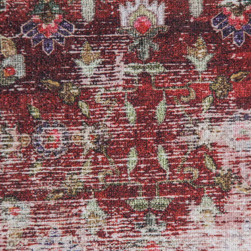 Alfombra reshe, en color burdeos, de estilo clasico. Fabricado en chenilla, combinado con poliester.