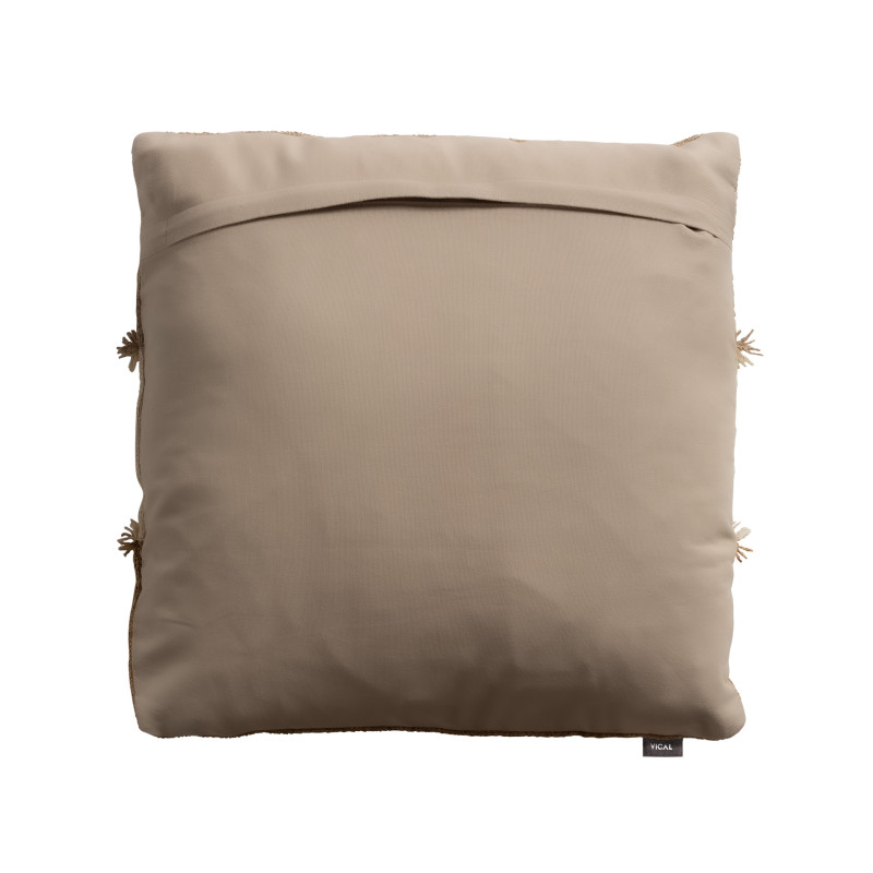 Cojin essien de estilo clasico fabricado en algodon en color tonos en marron combinado con terciopelo en color beige y guata sintetica. Producto desenfundable.