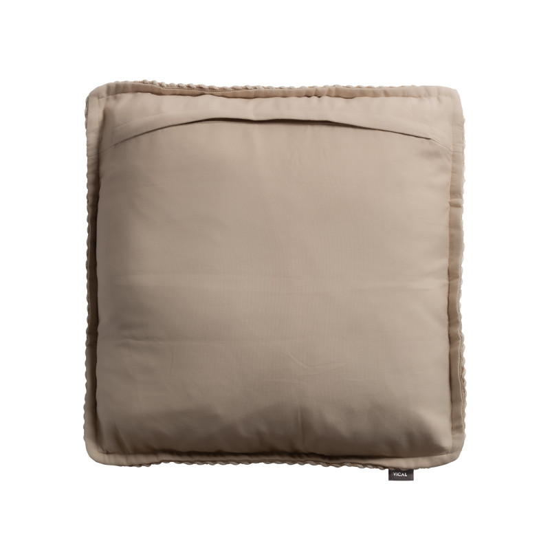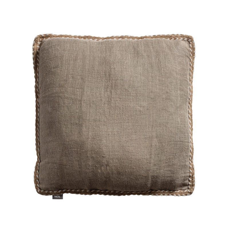Cojin ethan de estilo clasico fabricado en lino en color arena combinado con guata sintetica. Producto desenfundable.