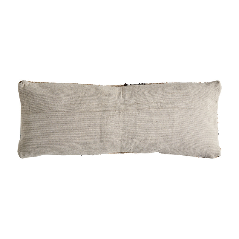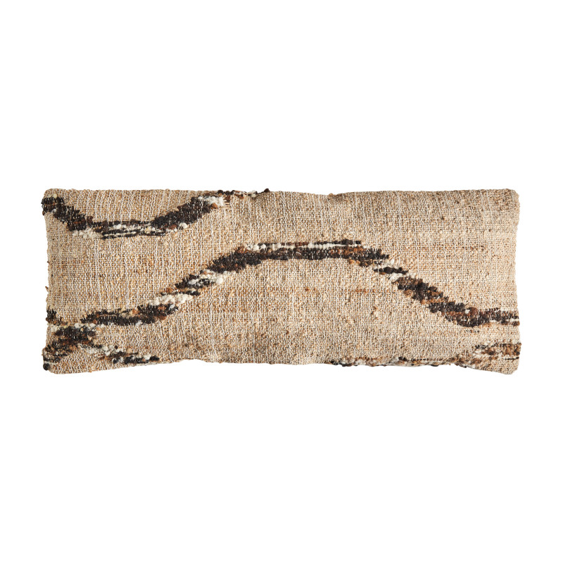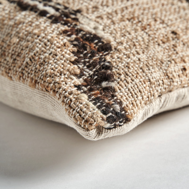 Cojin mittet en color tonos en marron de estilo boho. Fabricado en yute combinado con lana y fibra natural. Producto desenfundable.