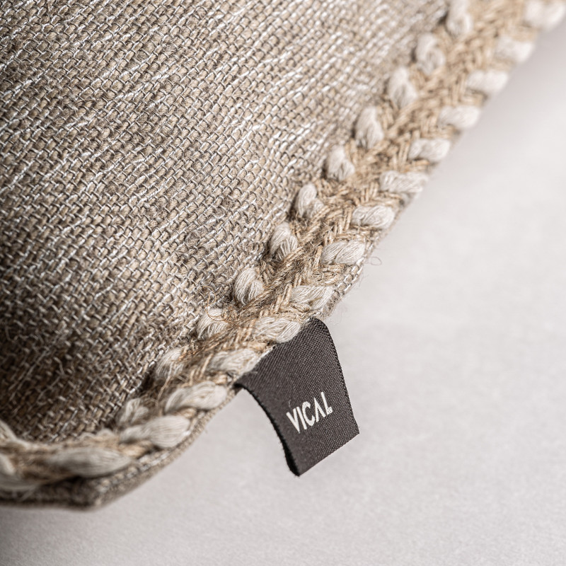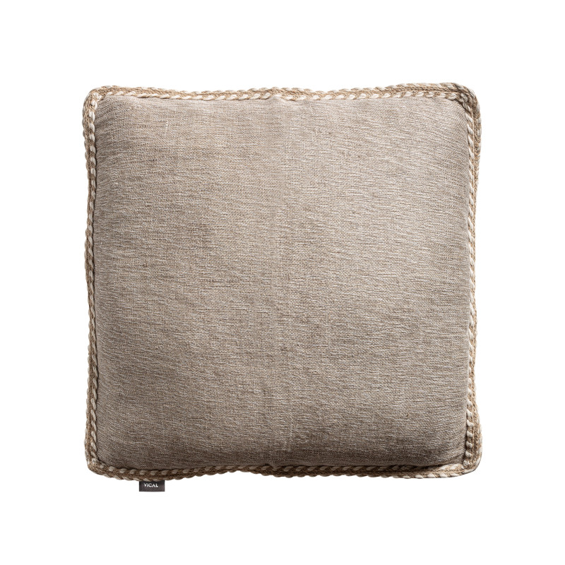 Cojin nehan de estilo clasico fabricado en lino en color arena combinado con guata sintetica. Producto desenfundable.