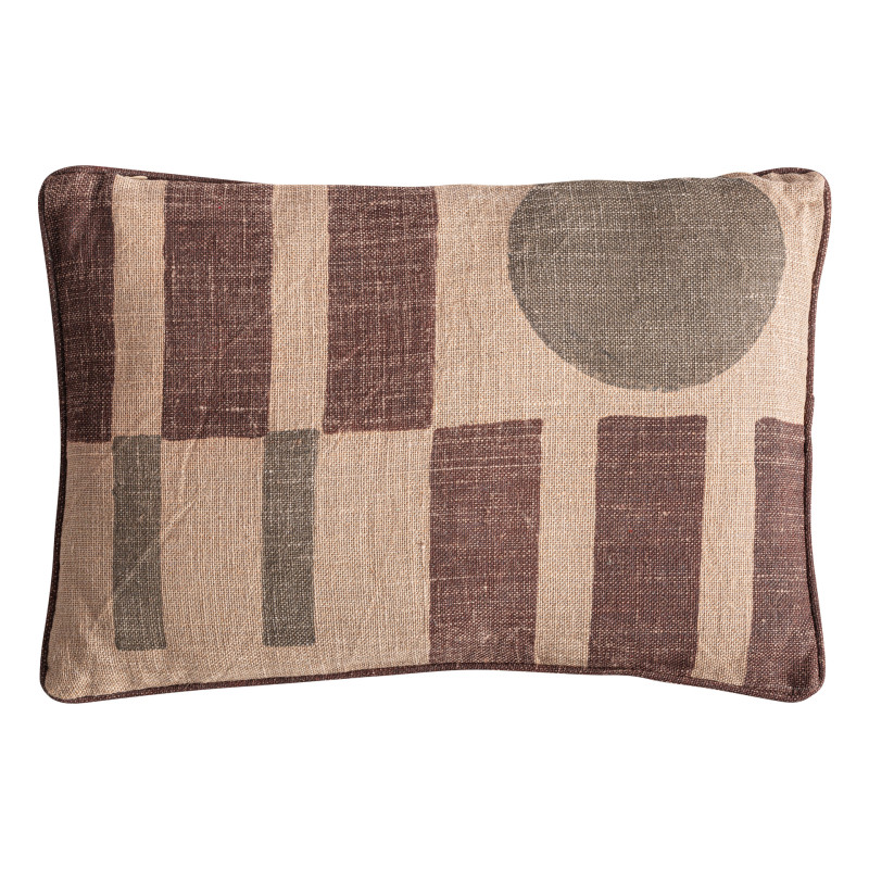 Cojin Anzaty de estilo Clasico Fabricado en Yute en Color Beige Combinado Con Fibra Natural en Color Tonos en Verde. Producto desenfundable.