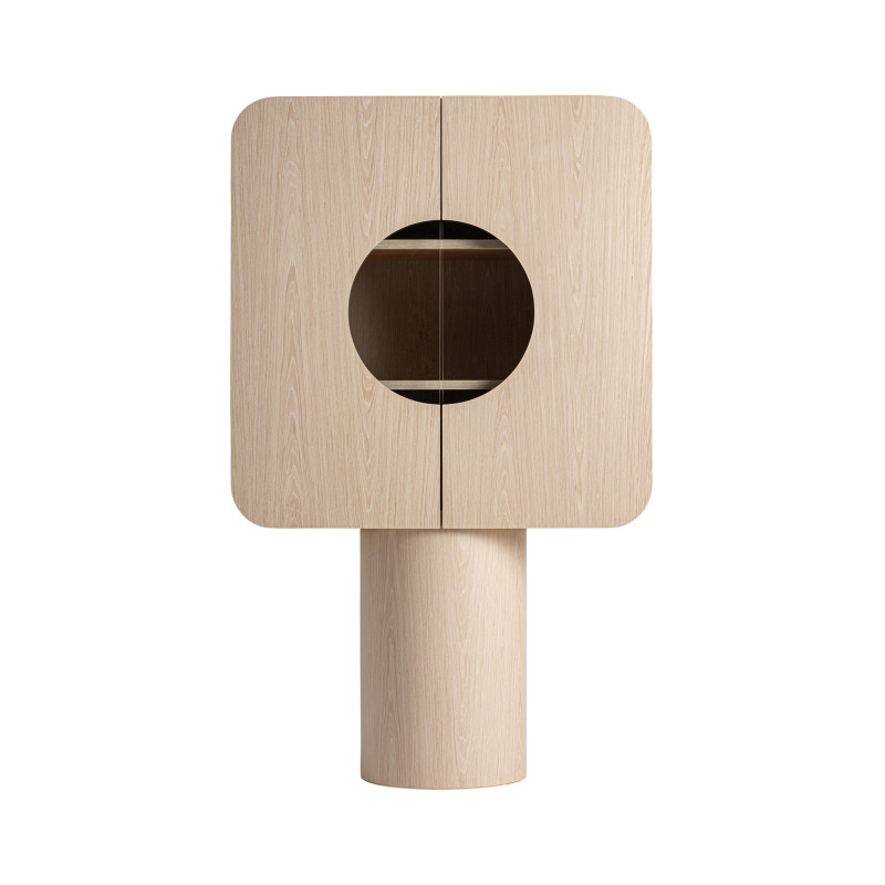Armario Kharj de estilo Art deco Fabricado en Madera Roble en Color Beige Combinado Con Cristal en Color Transparente. Producto desmontable.