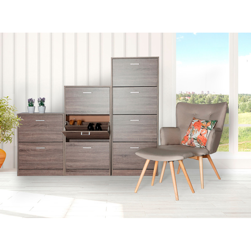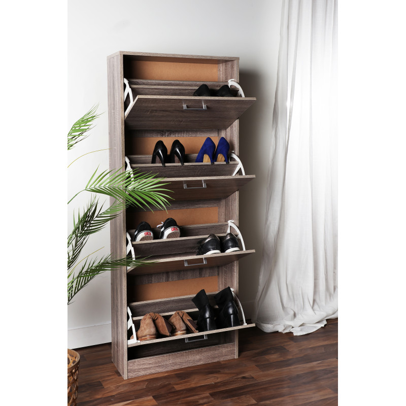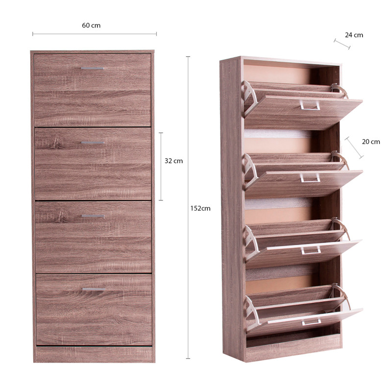 Zapatero blahnik, en color marron, de estilo shabby chic. Fabricado en madera dm. Producto desmontable.