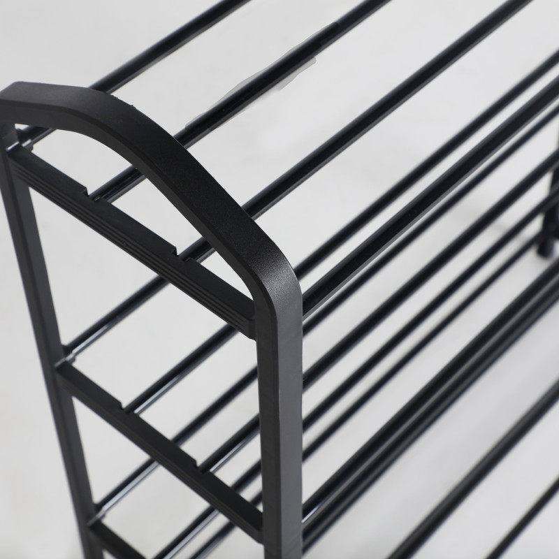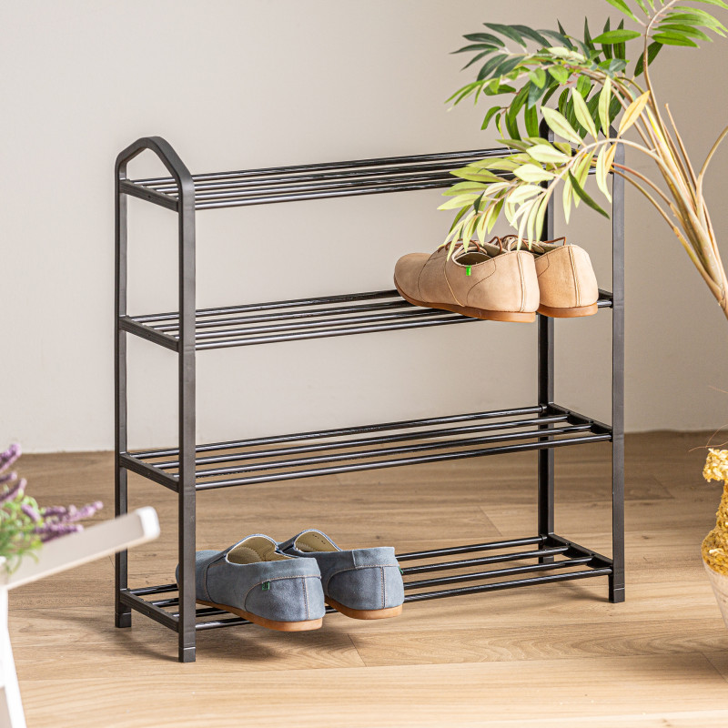 Zapatero mahon, en color negro, de estilo industrial. Fabricado en acero, combinado con plastico. Producto desmontable.