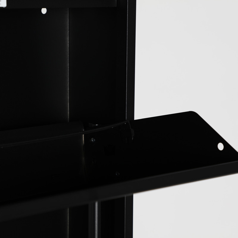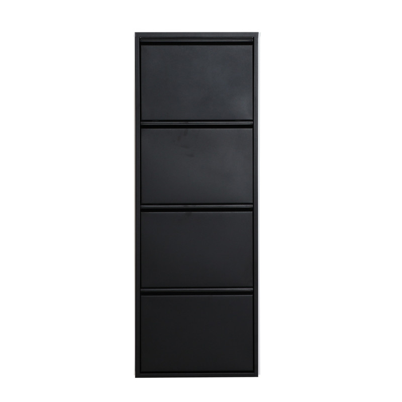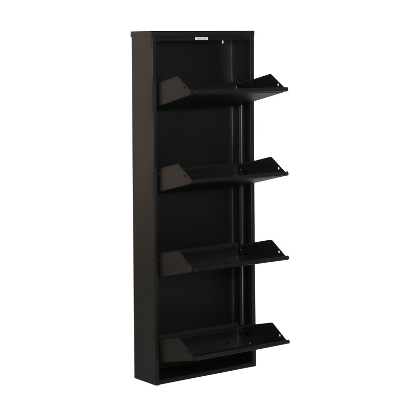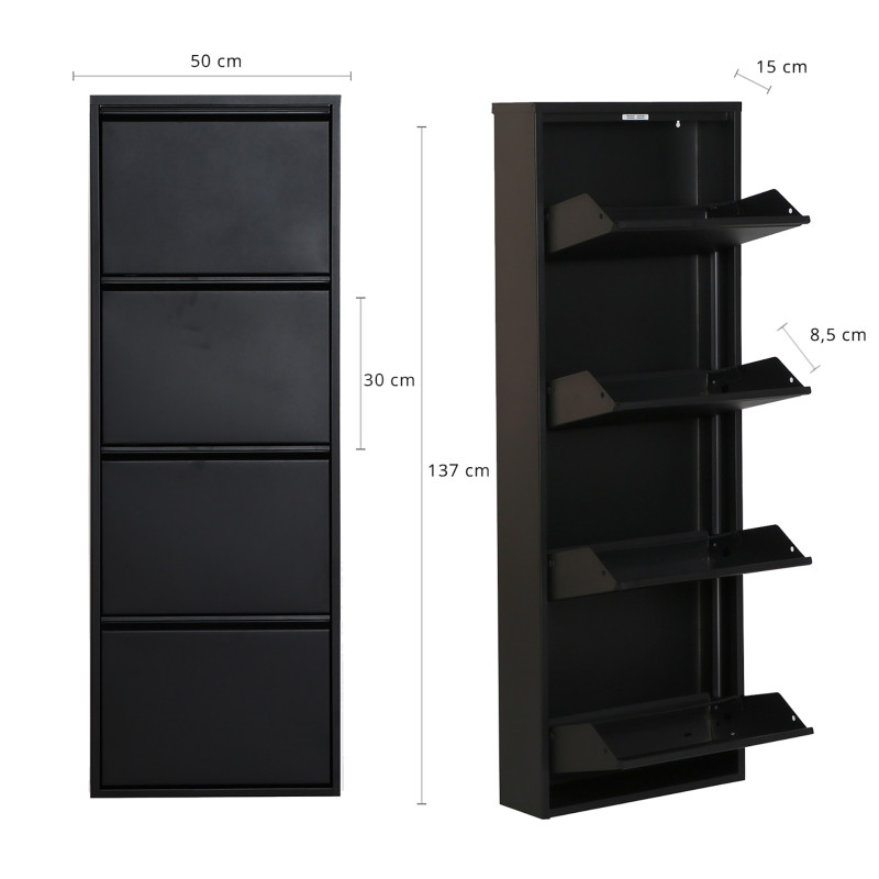 Zapatero nijar, en color negro, de estilo contemporaneo. Fabricado en acero. Capacidad para 8 pares de zapatos.
