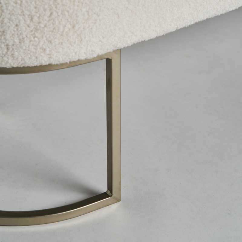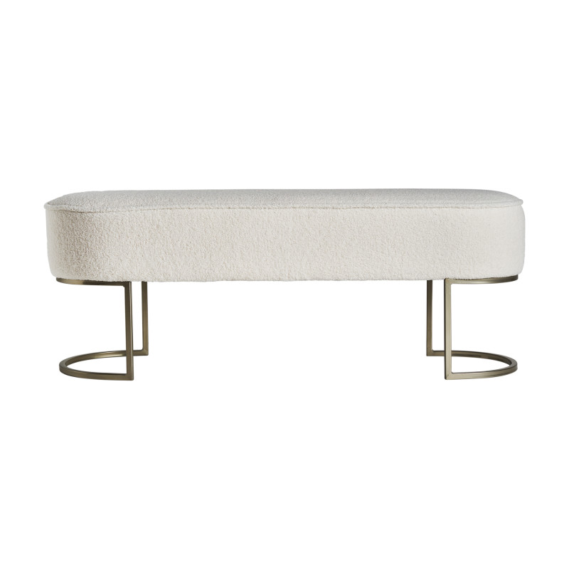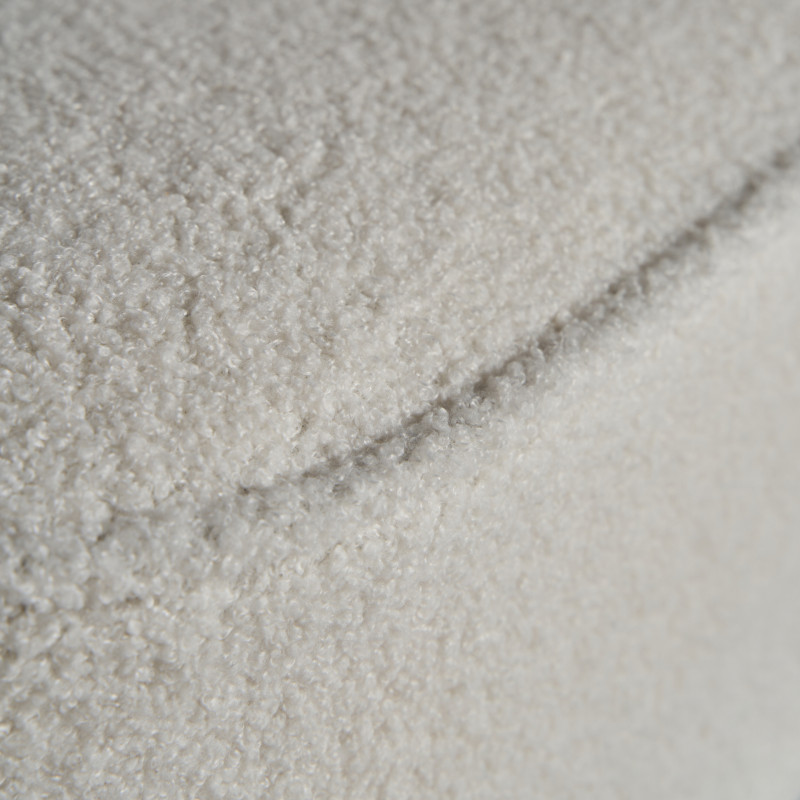 Pie de cama bats, en color blanco, de estilo art deco. Fabricado en algodon boucle, combinado con madera de pino y acero. Espuma. Producto desmontable.