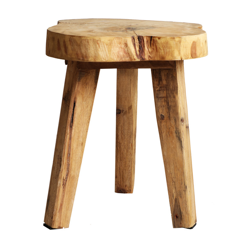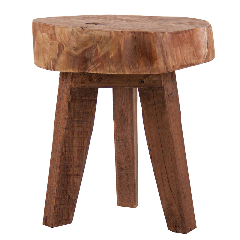 Reposapies ovaro, en color natural envejecido, de estilo etnico. Fabricado en madera de mahogany, combinado con madera de tamarindo.