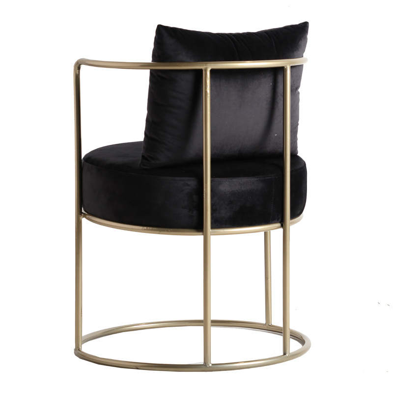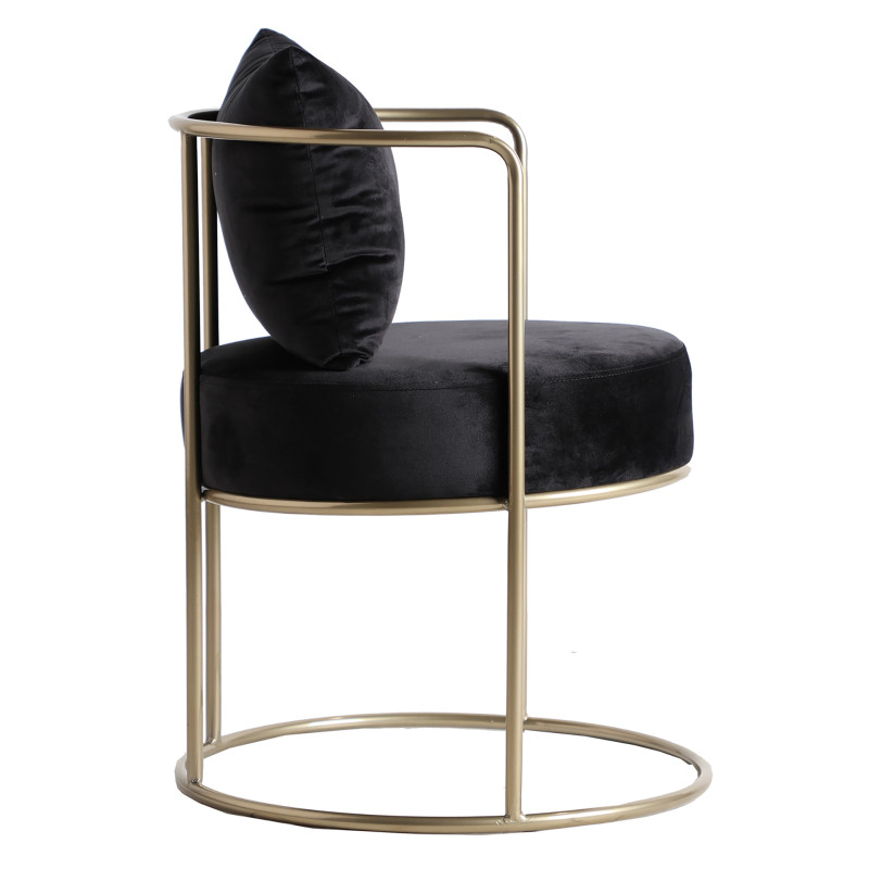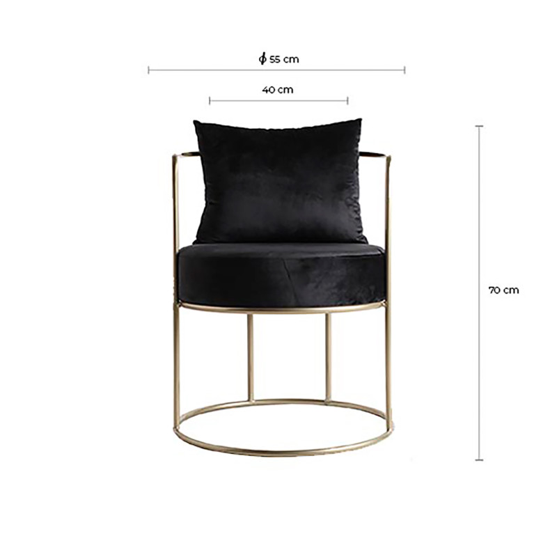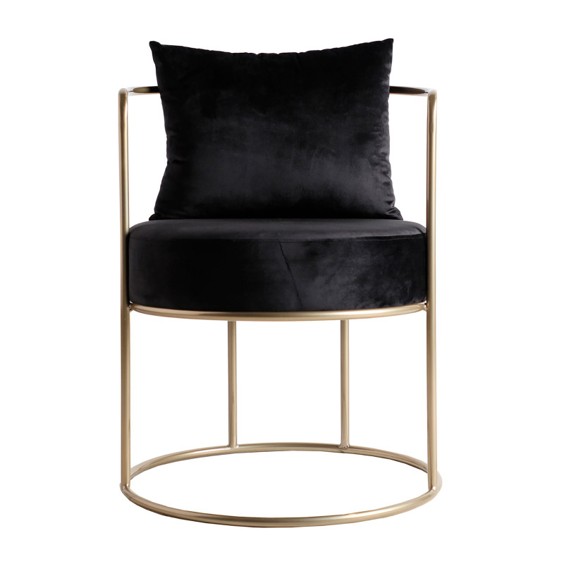 Sillon gulfi, en color negro/oro viejo, de estilo vintage. Fabricado en terciopelo, combinado con acero y espuma.
