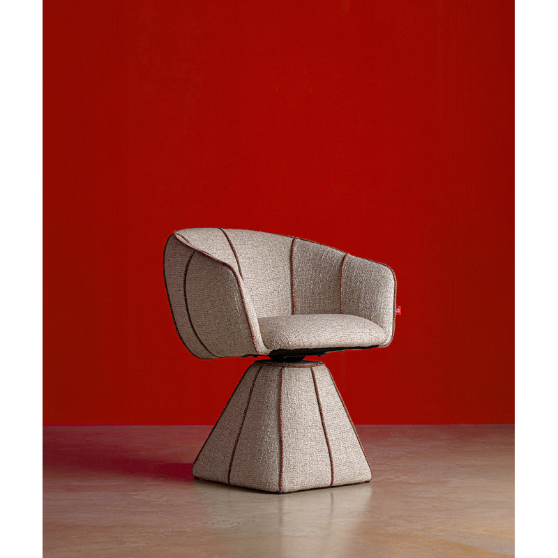 Sillon giratorio Siena de estilo moderno, fabricado en poliester en color tonos en marron con acabado jaspeado, combinado con hierro.