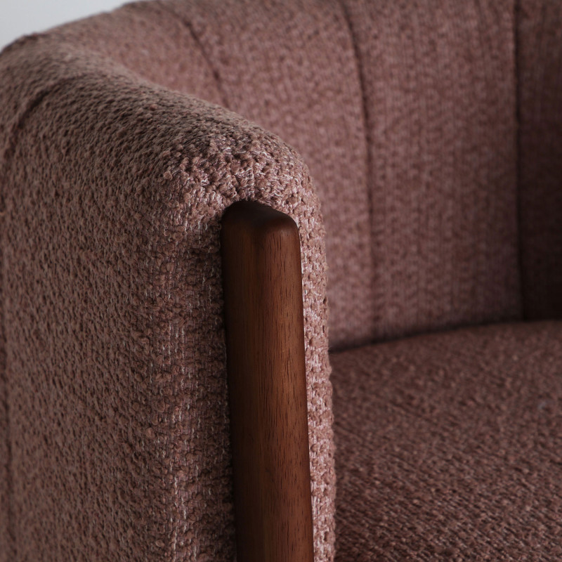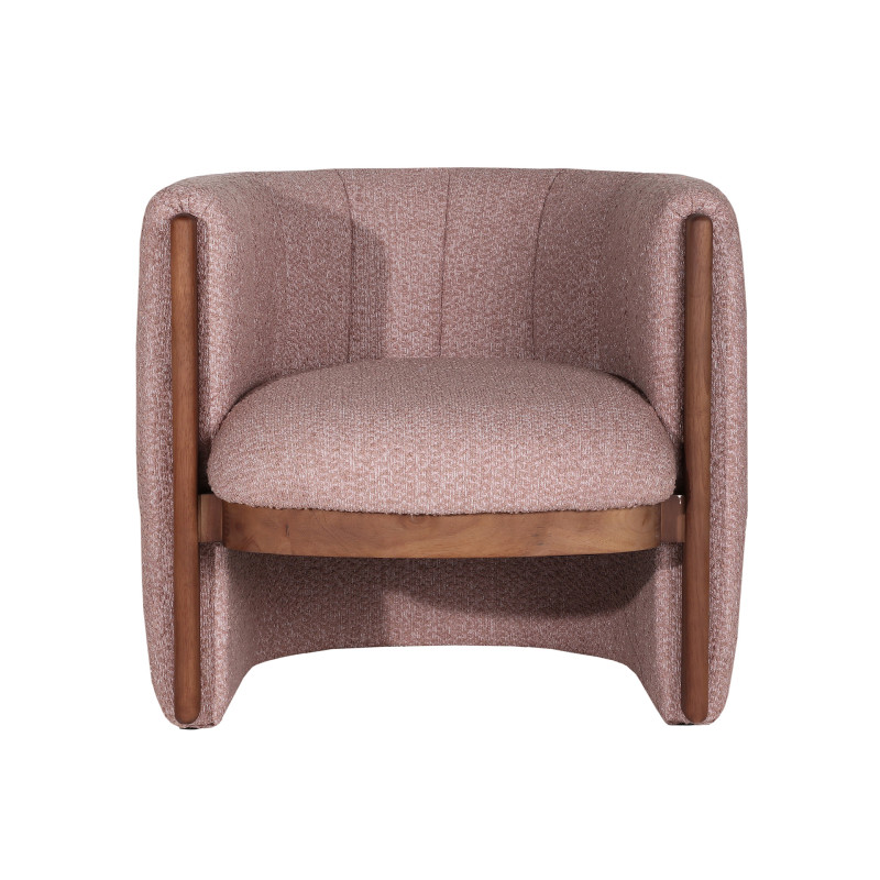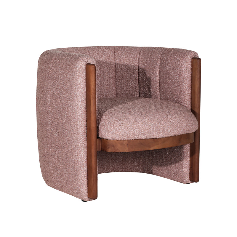Sillon fabricado en madera de pino en color marron combinado con poliester en color rosa y espuma.
