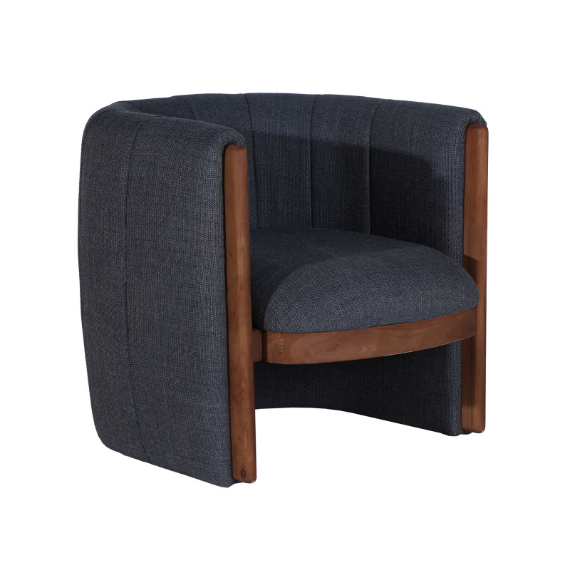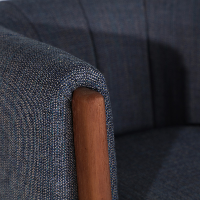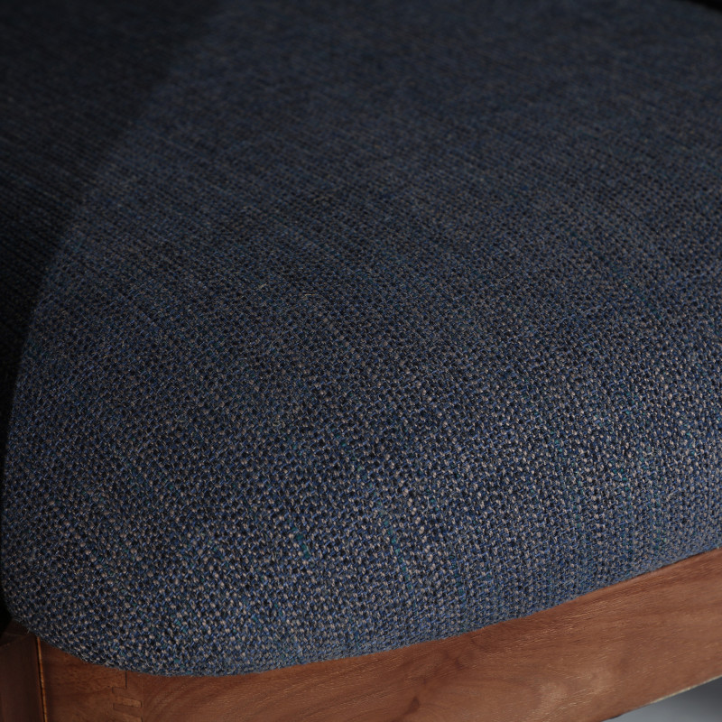 Sillon fabricado en madera de pino en color marron combinado con poliester en color azul con acabado jaspeado y espuma. Tapizado jaspeado en color azul y verde.