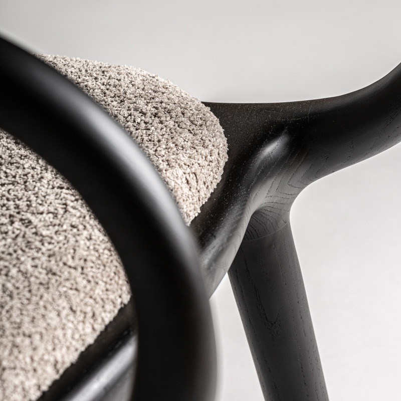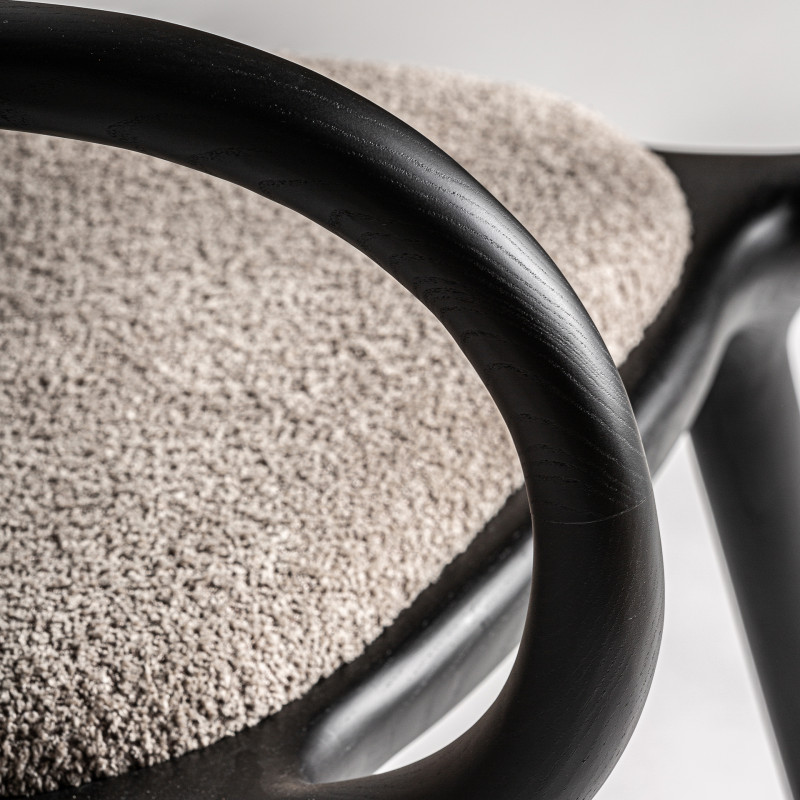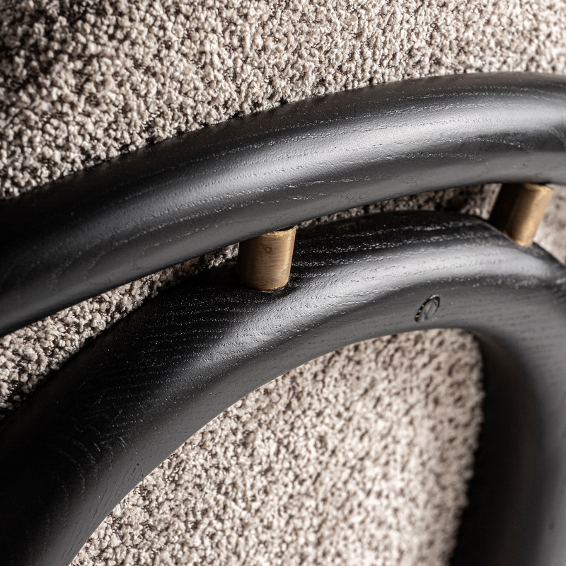 Sillon herten de estilo art deco fabricado en madera de fresno en color negro combinado con poliester en color marron.
