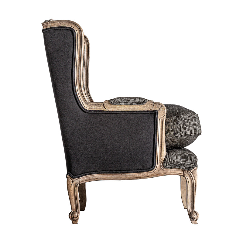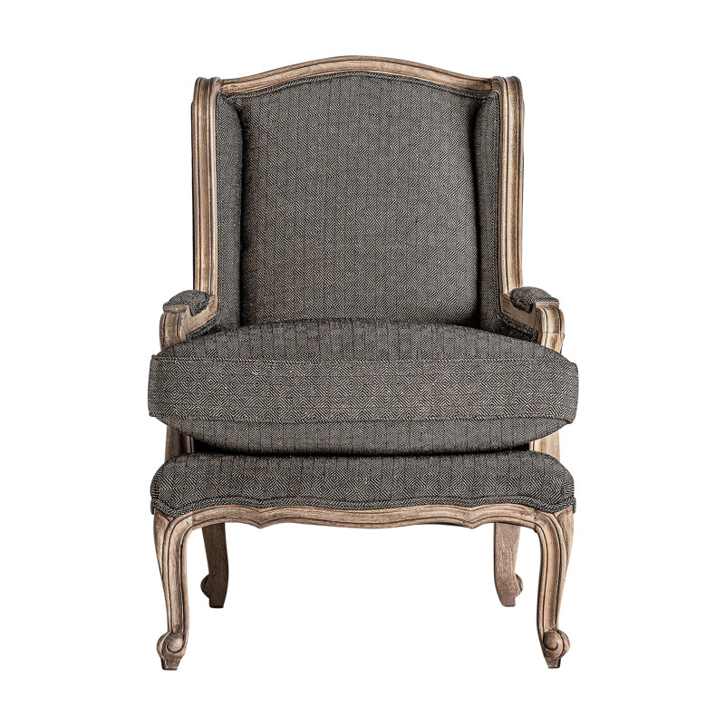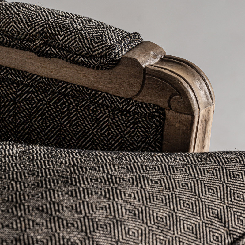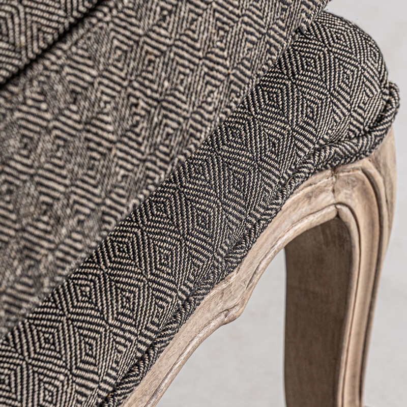 Sillon ruoms en color gris natural de estilo colonial. Fabricado en madera de mango combinado con poliester.