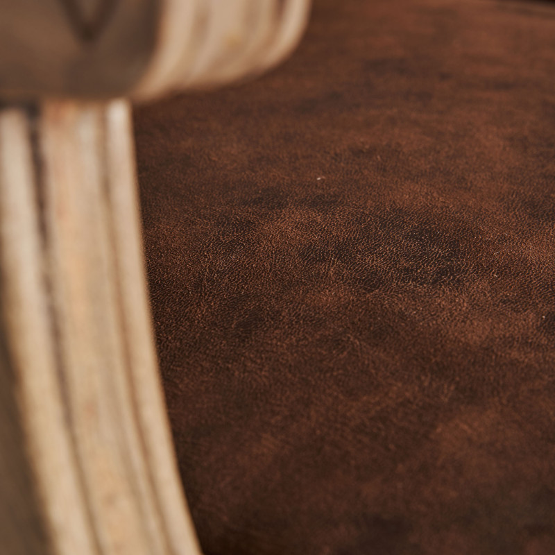 Sillon sampzon de estilo colonial fabricado en madera de mango en color marron combinado con poliester.