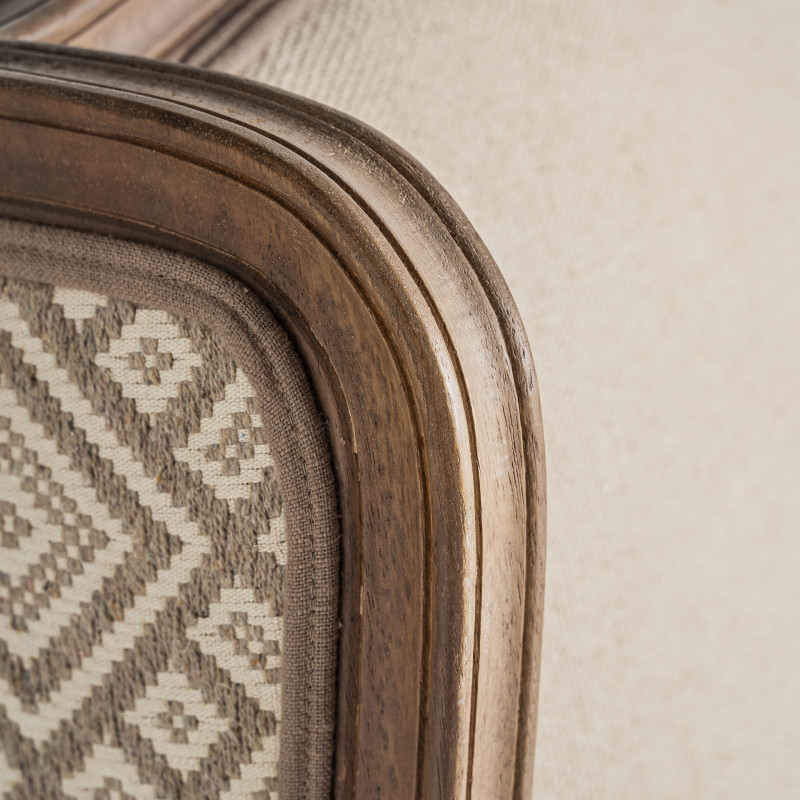 Sillon tulle de estilo colonial fabricado en madera de mango en color marron combinado con poliester en color beige. Producto desenfundable.