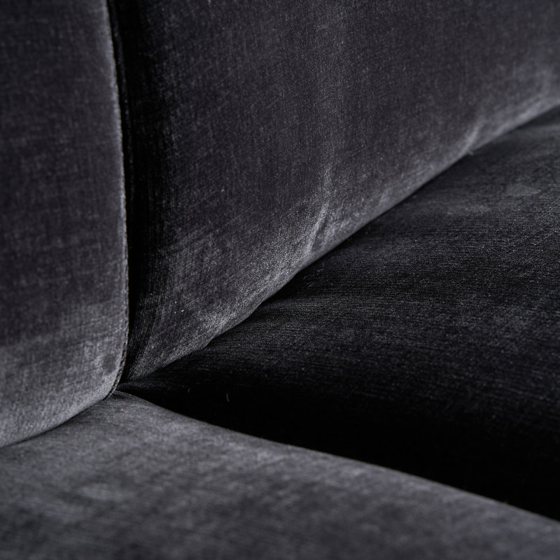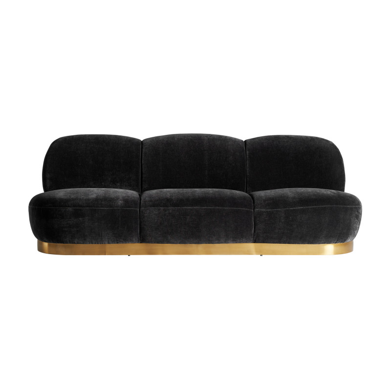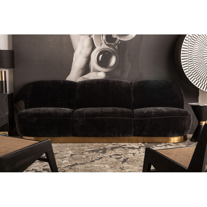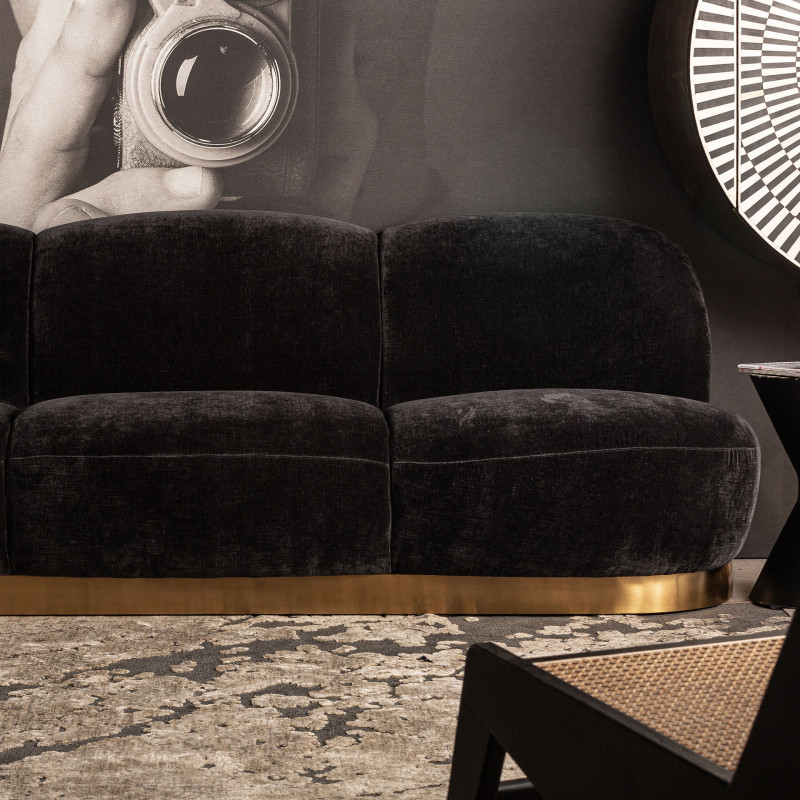 Sofa balsot en color negro oro de estilo art deco. Fabricado en madera de pino combinado con terciopelo y acero.