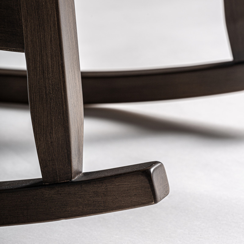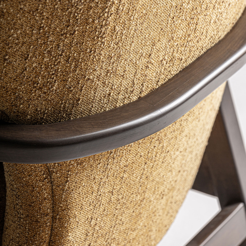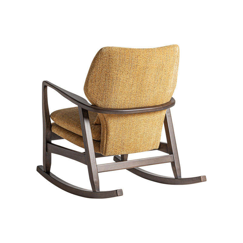 Mecedora Kelly de estilo Contemporaneo. Fabricado en Madera de Fresno en Color Marron Mate Combinado Con Poliester en Color Ocre Jaspeado.