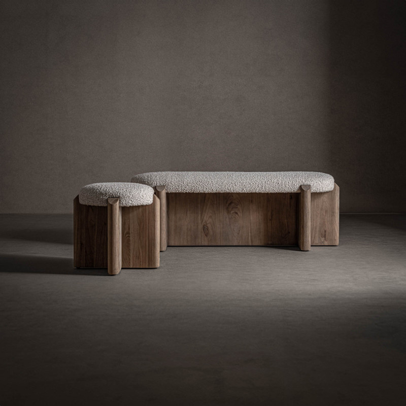 Pie de Cama Jacquard de estilo Contemporaneo Fabricado en Madera de Olmo en Color Marron Combinado Con Poliester en Color Beige.