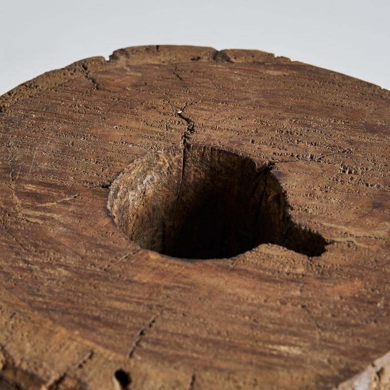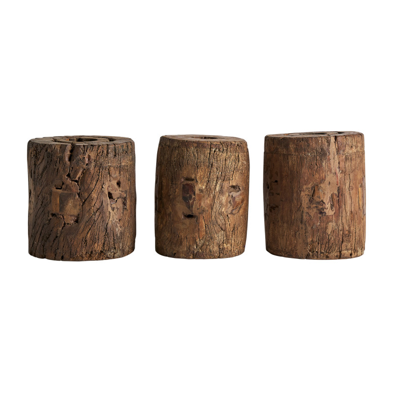 Reposapies Kraj de estilo etnico Fabricado en Madera de Mango en Color Marron Con Acabado envejecido.