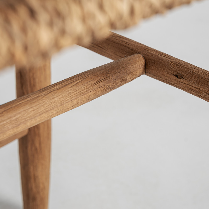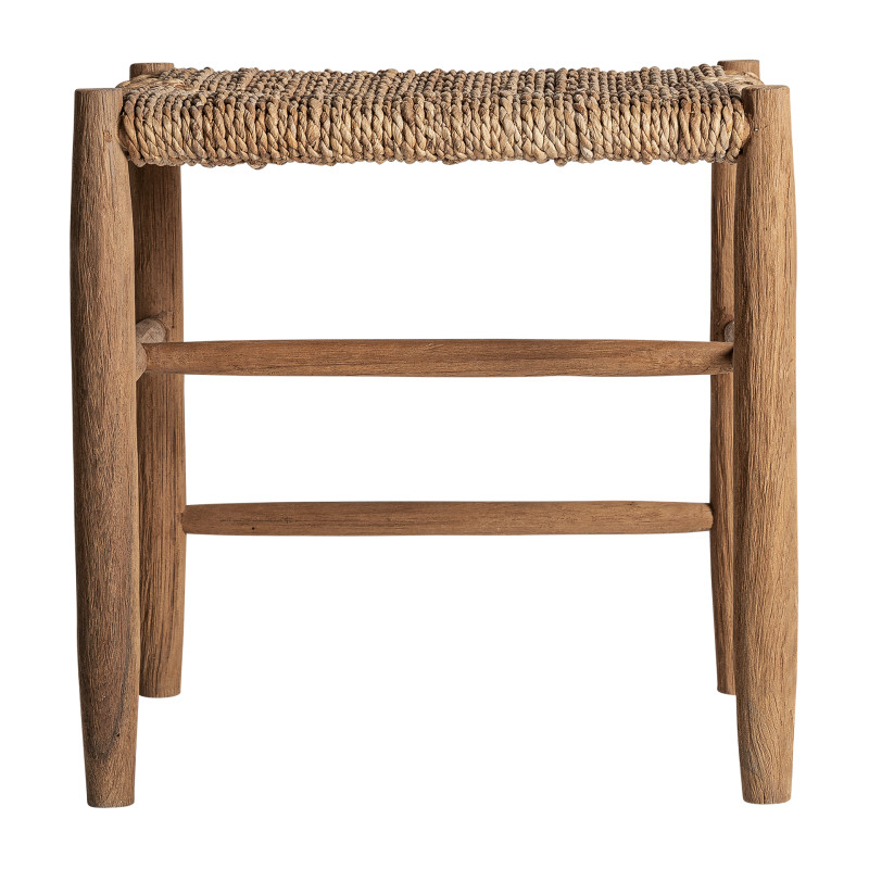 Reposapies Lavs de estilo Colonial Fabricado en Madera de Teka en Color Marron Combinado Con enea en Color Marron Claro.