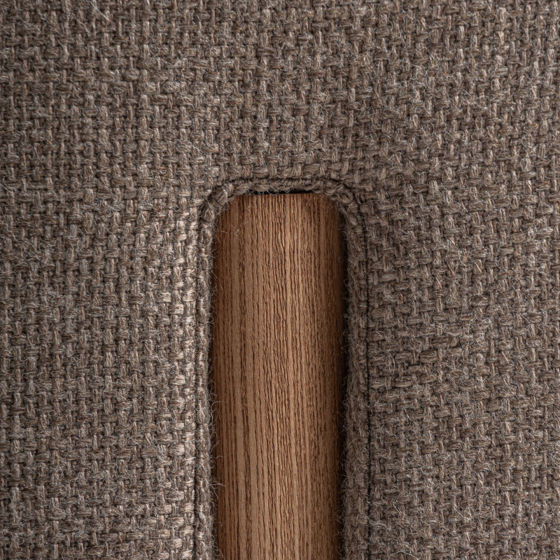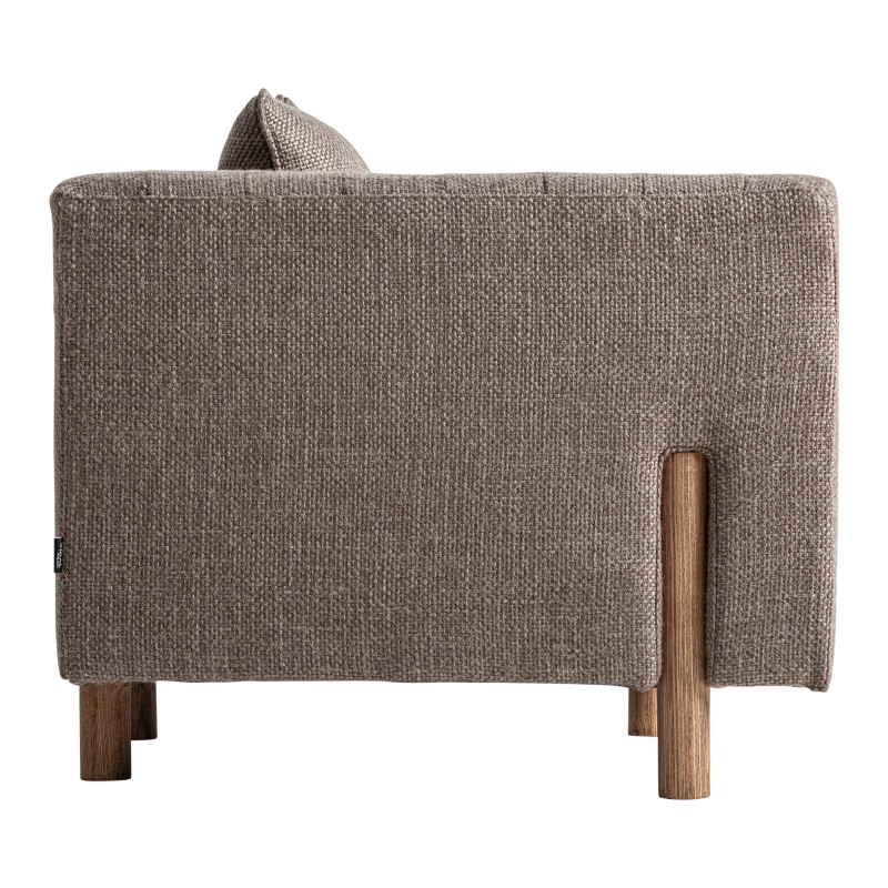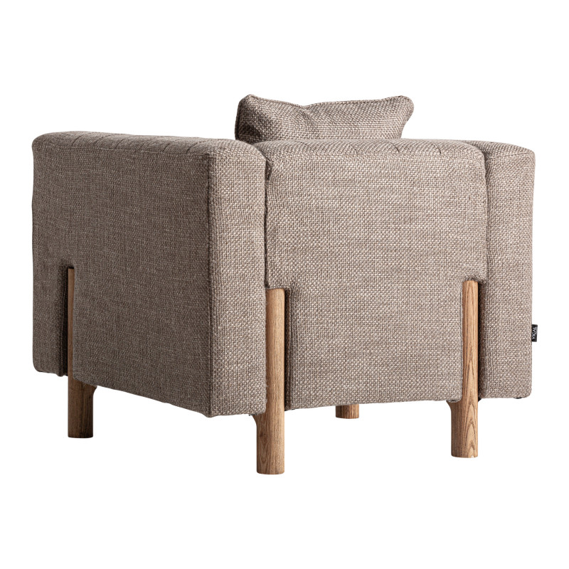 Sillon Carlton de estilo Colonial Fabricado en Poliester en Color Beige Con Acabado Jaspeado Combinado Con Madera de Pino en Color Marron Claro Y espuma.