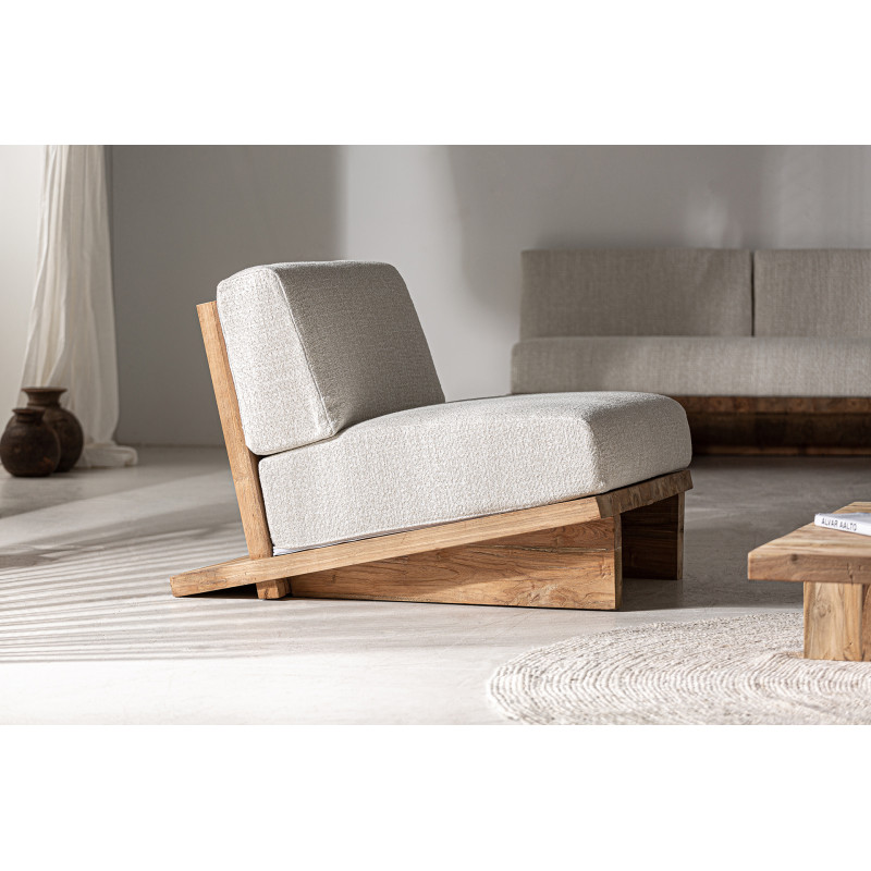 Sillon Pure de estilo Colonial Fabricado en Madera de Teka Reciclada en Color Marron Combinado Con Polipropileno Reciclado en Color Blanco. Producto desmontable desenfundable.