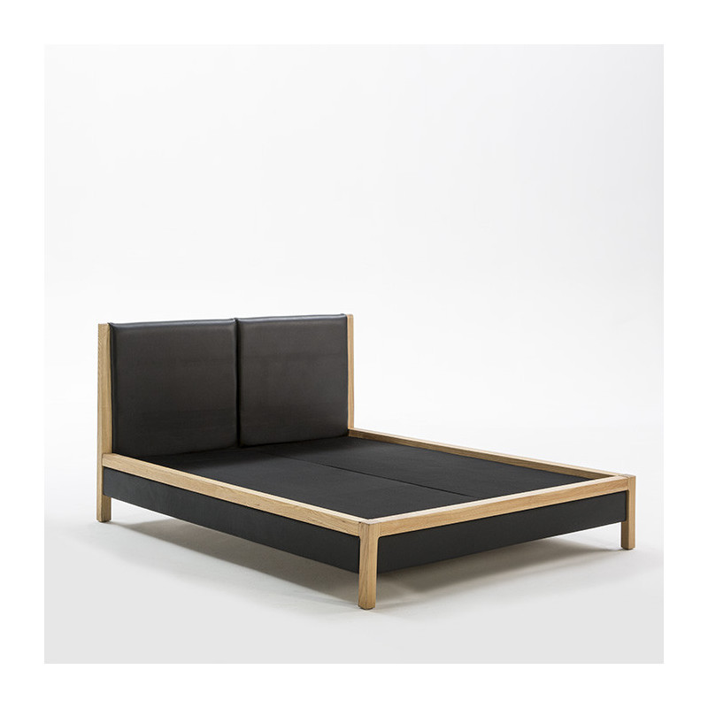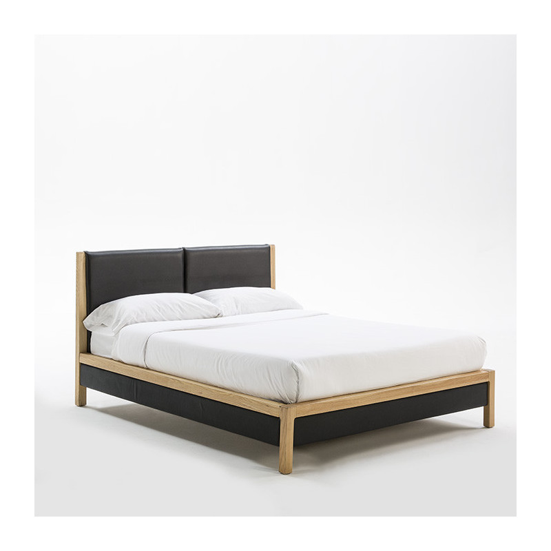 CAMA 163x205x100 MADERA FRESNO/P.PIEL NEGRO
