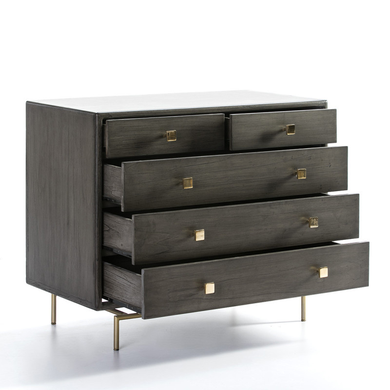 COMODA 110x55x95 METAL DORADO/MADERA GRIS