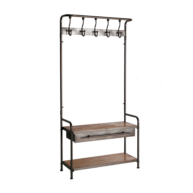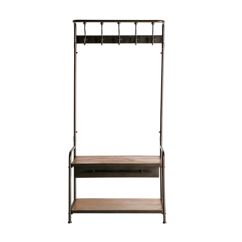 Perchero rectangular raich, en color gris/natural, de estilo industrial. Fabricado en hierro, combinado con madera de abeto. Producto desmontable.