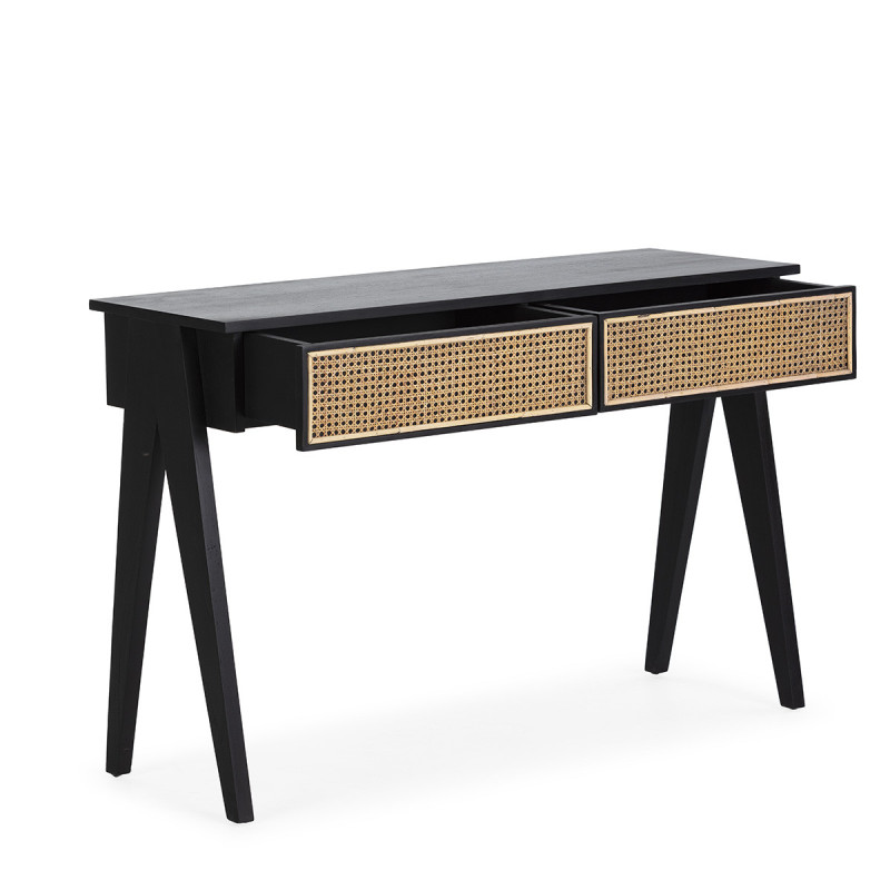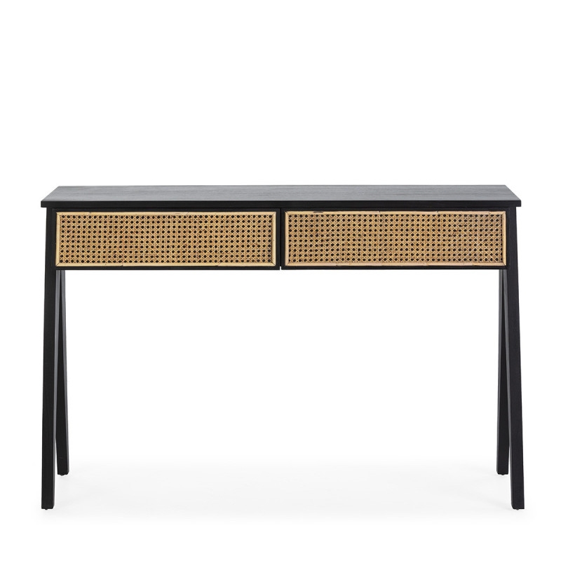 CONSOLA 120x40x80 MADERA NEGRO/RATAN NATURAL