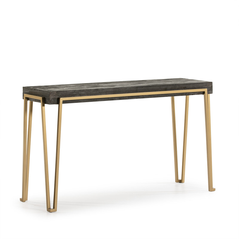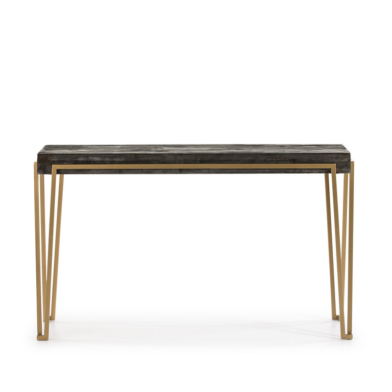 CONSOLA 140x45x82 MADERA NATURAL OSCURO/METAL DORADO