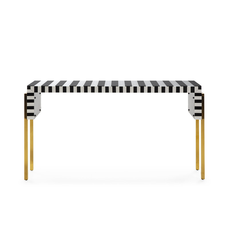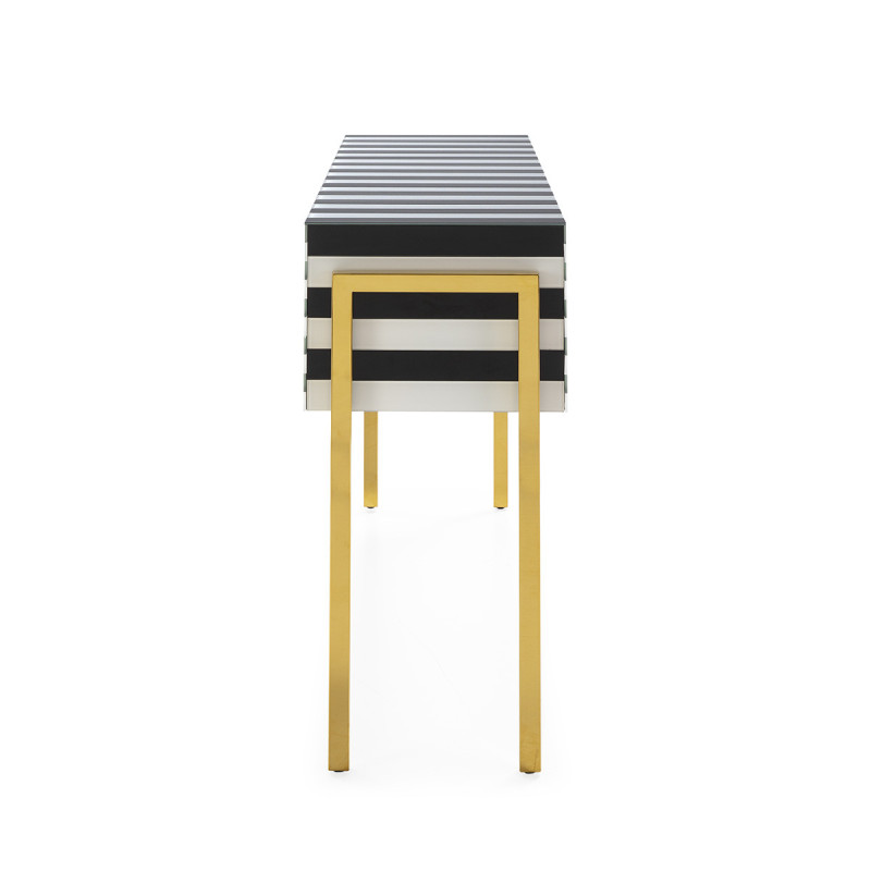 CONSOLA 156x38x85 CRISTAL BLANCO/NEGRO/ACERO DORADO CHAMPAGNE/DM NEGRO