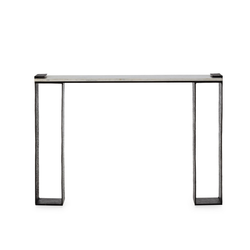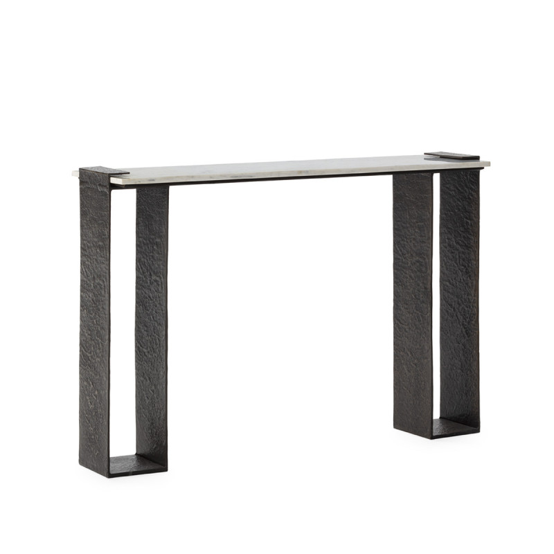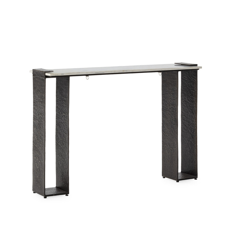 CONSOLA 119x32x91 METAL LATON ANTIQUE/MARMOL BLANCO