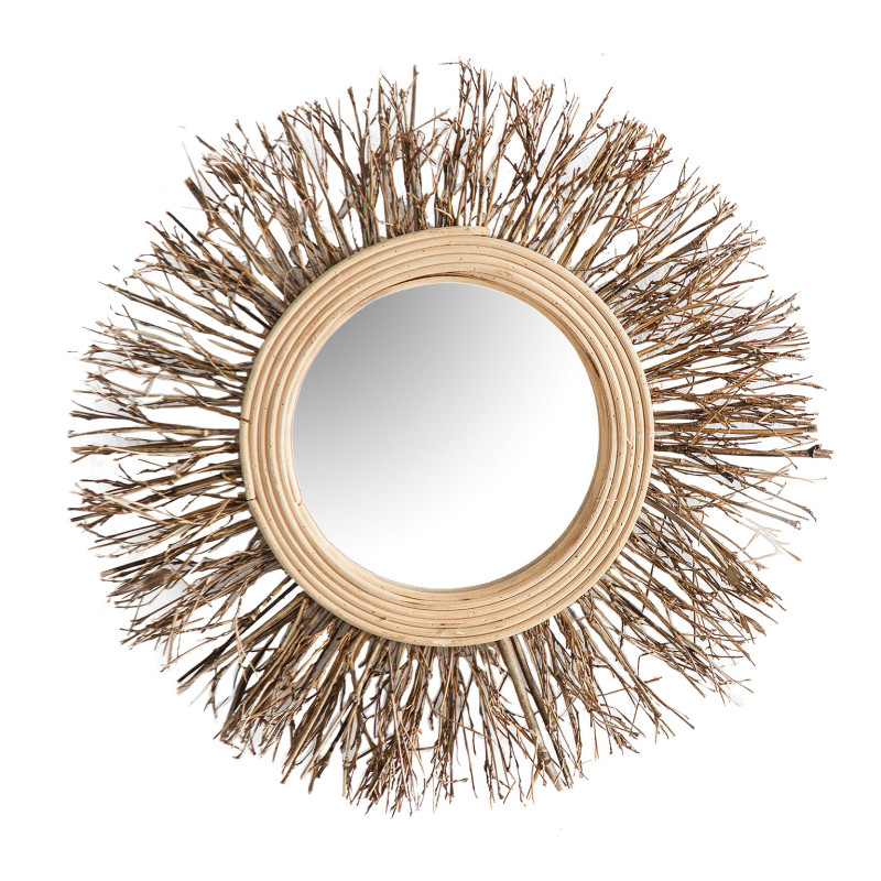 ESPEJO REDONDO KAIL, EN COLOR NATURAL, DE ESTILO ETNICO. FABRICADO EN BAMBU, COMBINADO CON ESPEJO Y MADERA CONTRACHAPADA.