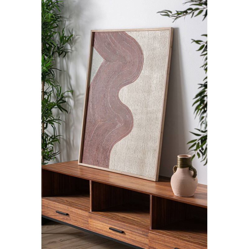 Cuadro adriel, en color blanco/rojo artesanal, de estilo contemporaneo. Fabricado en lienzo, combinado con madera de paulownia.