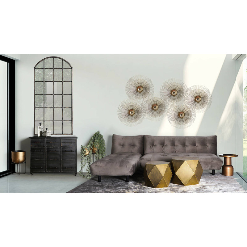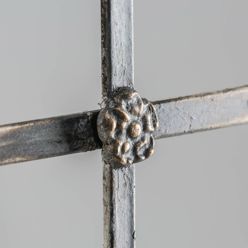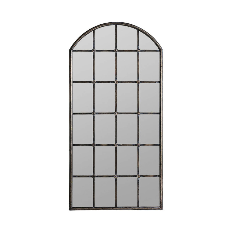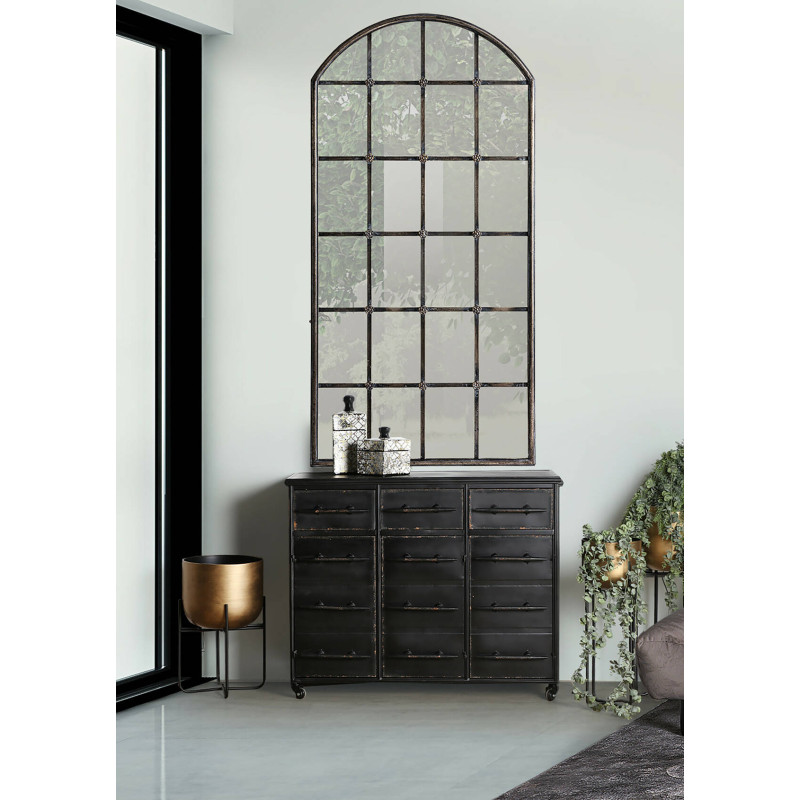 Espejo alano, en color negro patina, de estilo industrial. Fabricado en hierro, combinado con espejo.