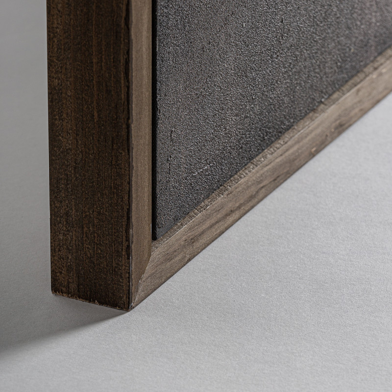 Lienzo cleon, en color tonos en marron artesanal, de estilo contemporaneo. Fabricado en lienzo, combinado con madera de pino.