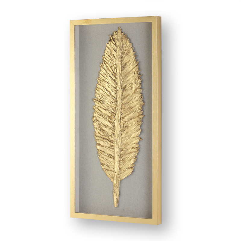 CUADRO 50x5x100 CRISTAL/MADERA DORADO/PLUMA DORADO