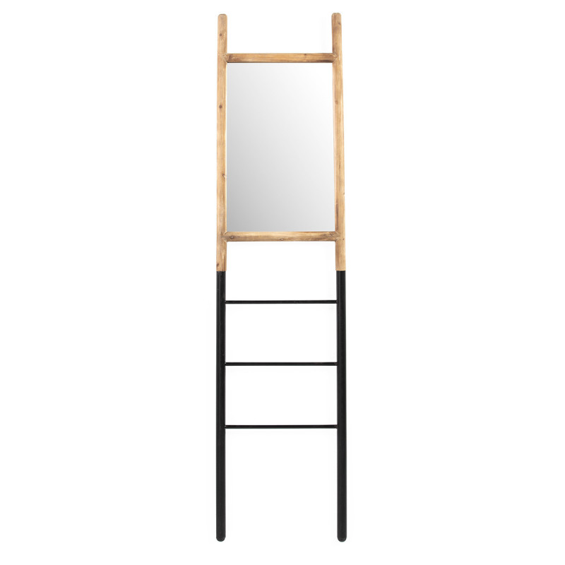 ESPEJO-ESCALERA 43x3x184 CRISTAL/METAL NEGRO/MADERA NATURAL