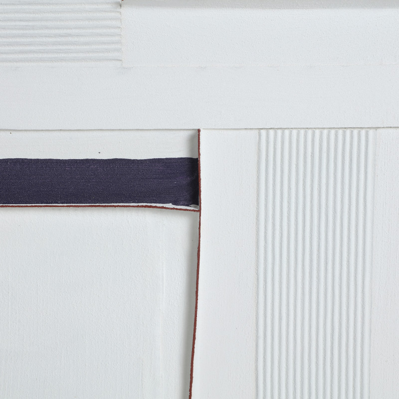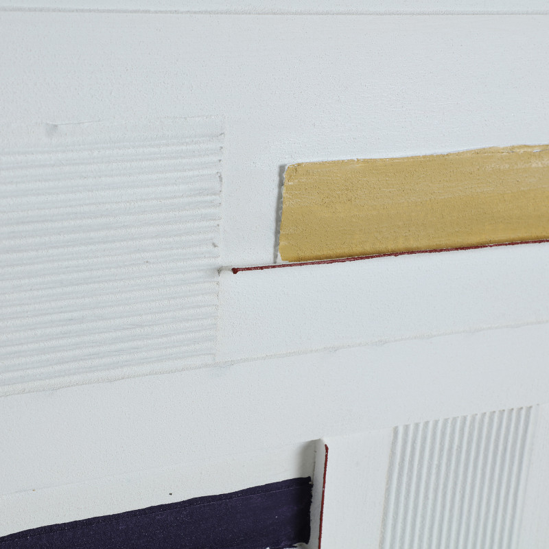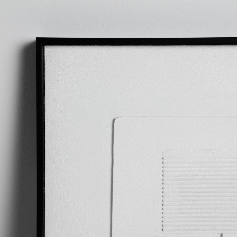 Cuadro j/2 cuadrado ezio de estilo contemporaneo, fabricado en lienzo en color blanco con acabado artesanal, combinado con poliestireno en color negro y madera de pino.