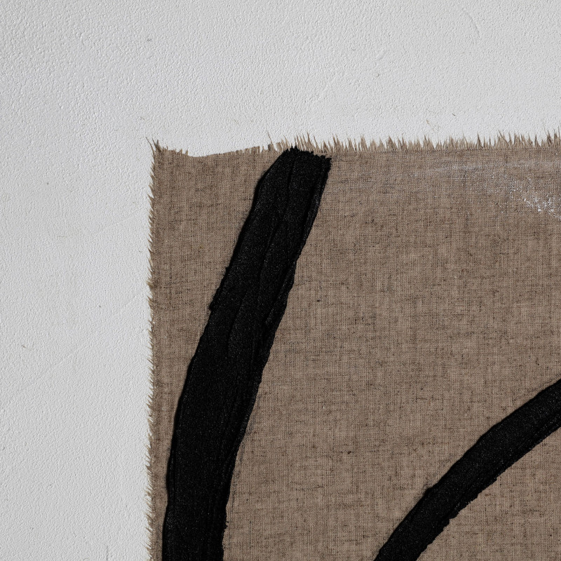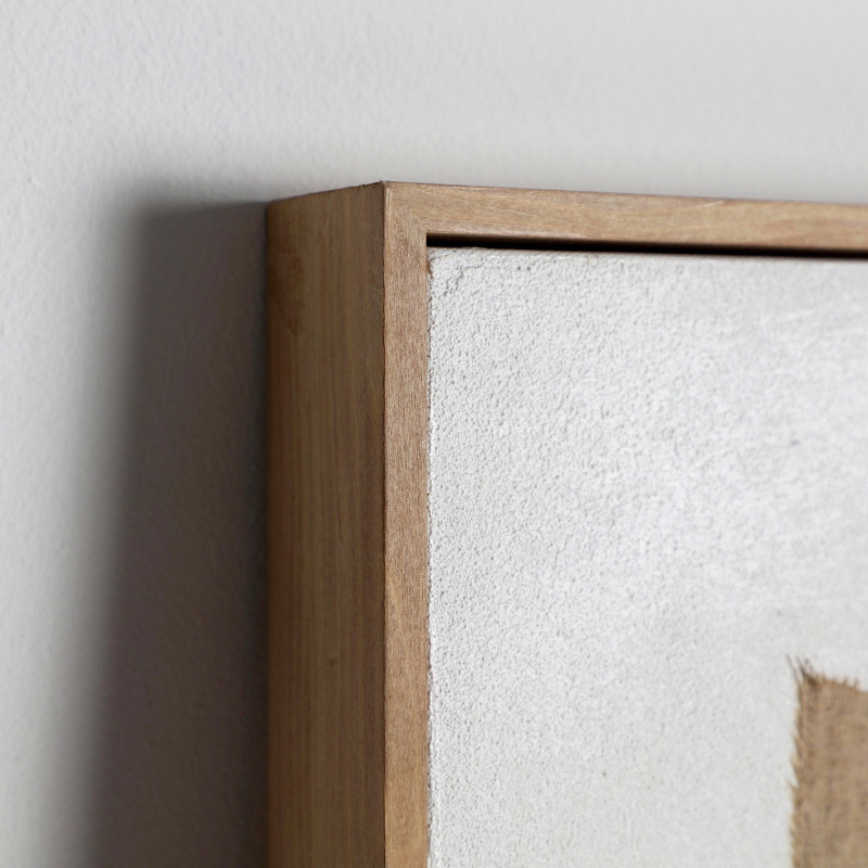 Cuadro rectangular elysee de estilo contemporaneo, fabricado en lienzo en color beige con acabado artesanal, combinado con madera de pino en color marron claro.