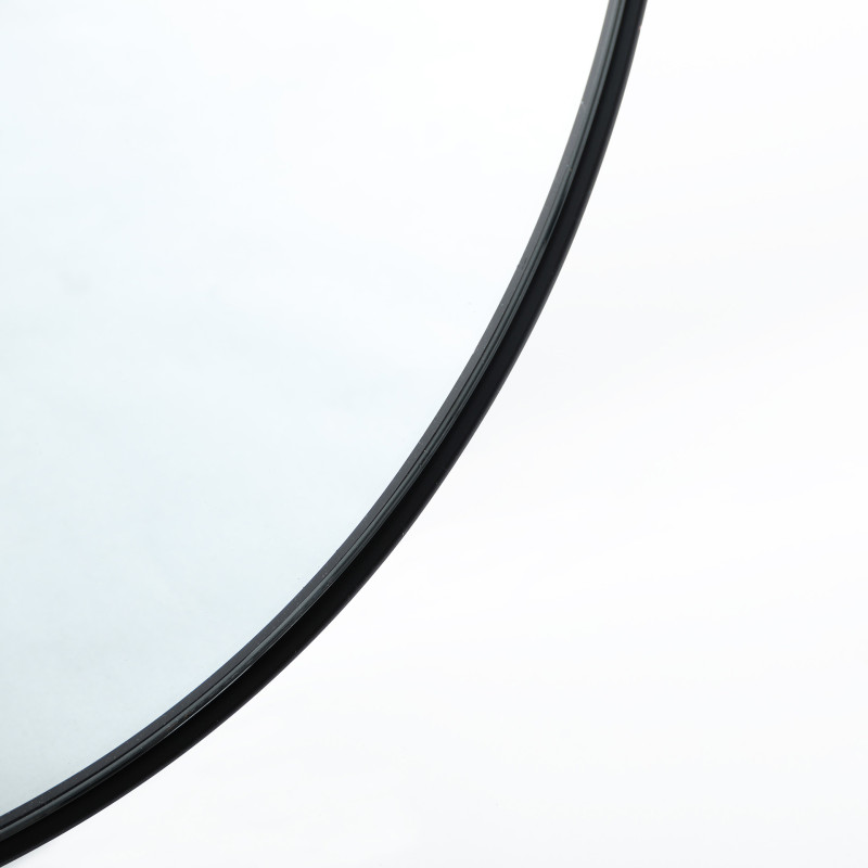 Espejo Kalid de estilo industrial, fabricado en hierro en color negro, combinado con madera dm y espejo.