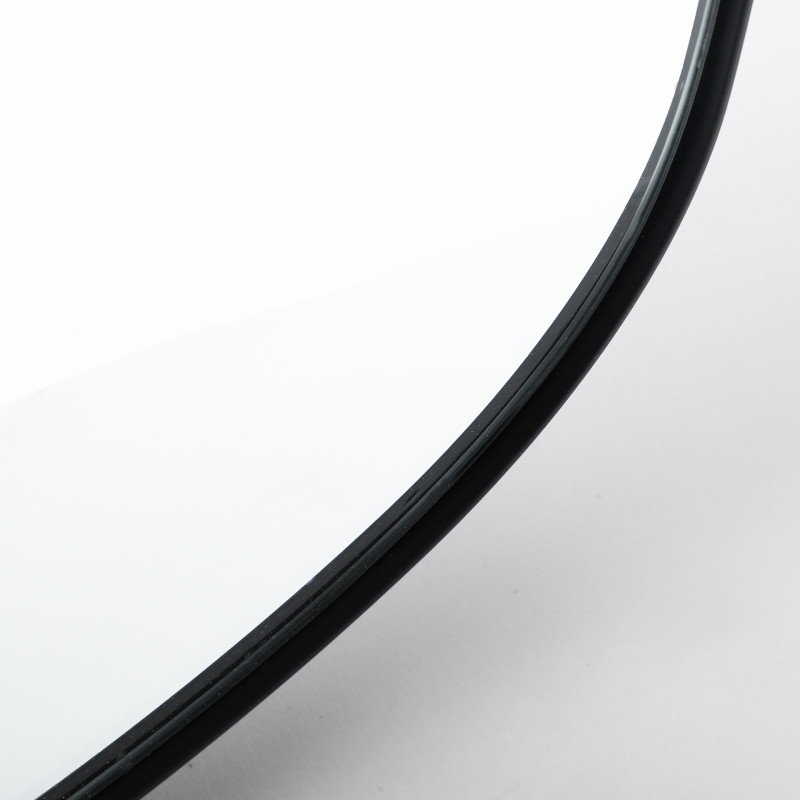 Espejo Kalid de estilo industrial, fabricado en hierro en color negro, combinado con madera dm y espejo.