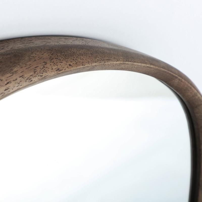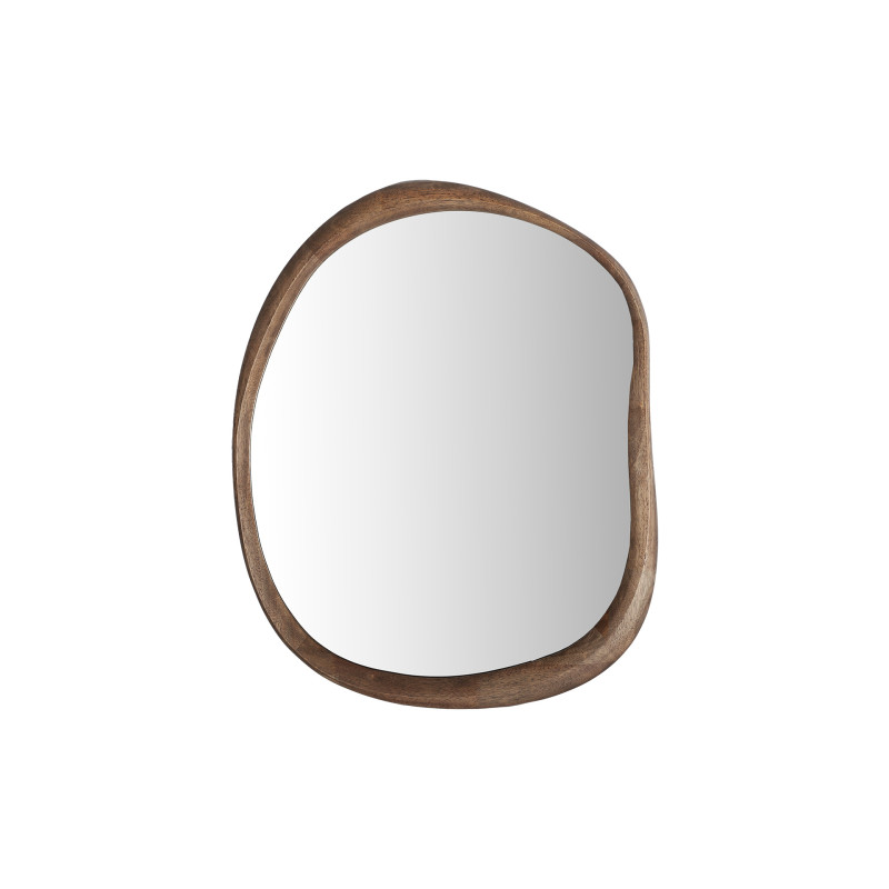 Espejo Lubeca de estilo contemporaneo, fabricado en madera de caucho en color marron, combinado con madera dm en color marron y espejo.