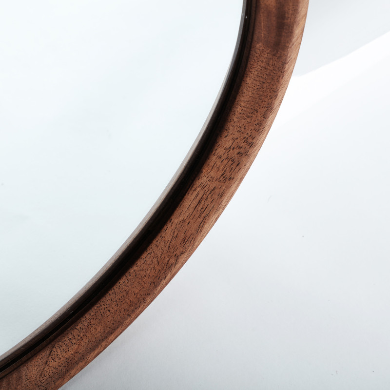 Espejo Lubeca de estilo art deco, fabricado en madera de caucho en color marron, combinado con madera dm y espejo.