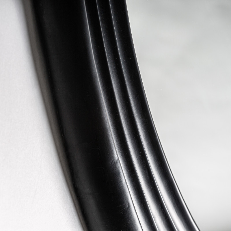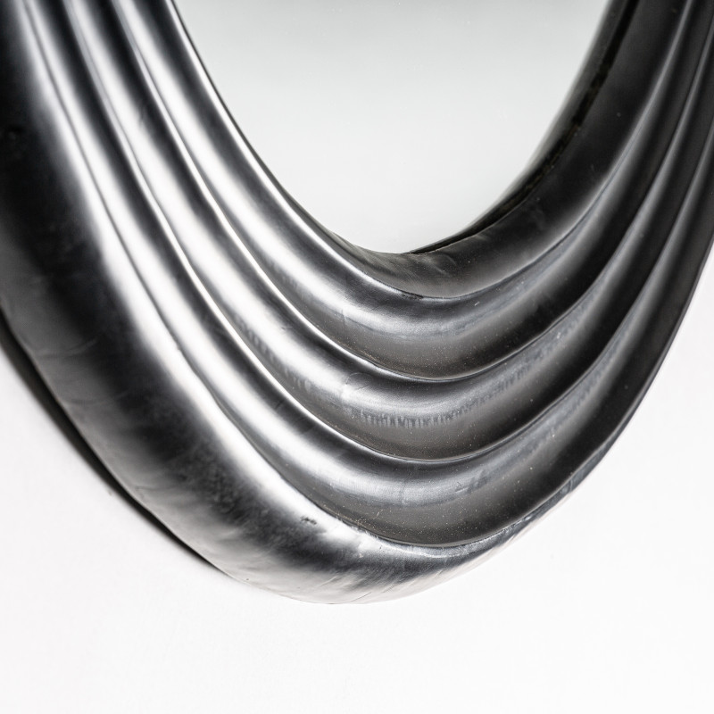 Espejo de estilo colonial fabricado en resina en color negro combinado con hierro y espejo.