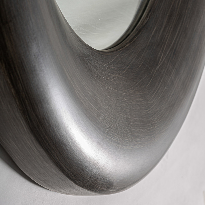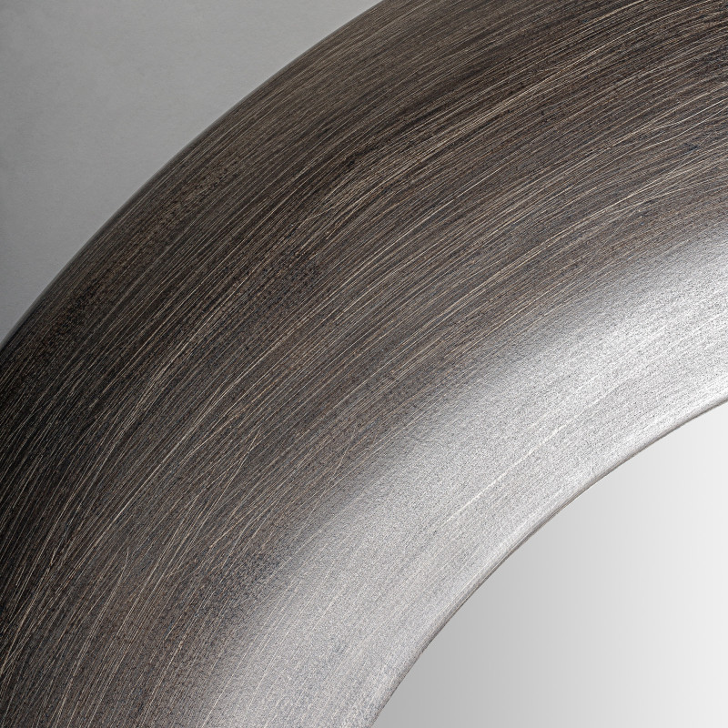 Espejo de estilo contemporaneo fabricado en resina en color marron con acabado patina combinado con espejo.