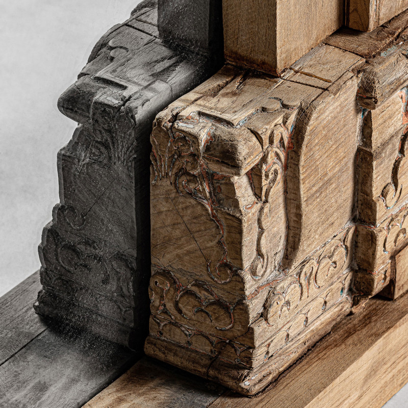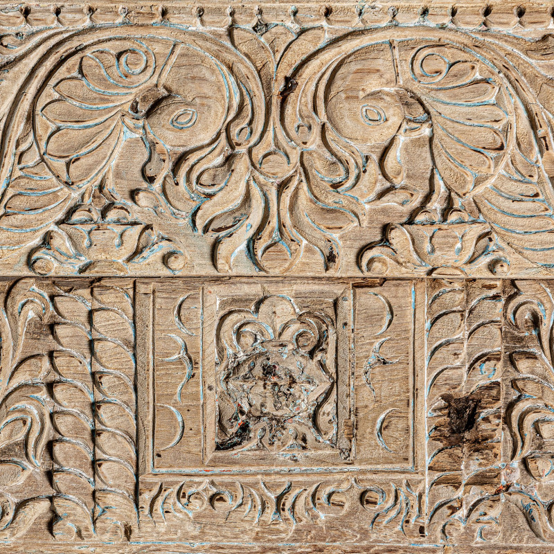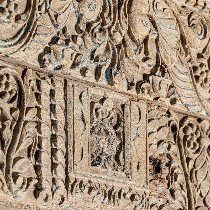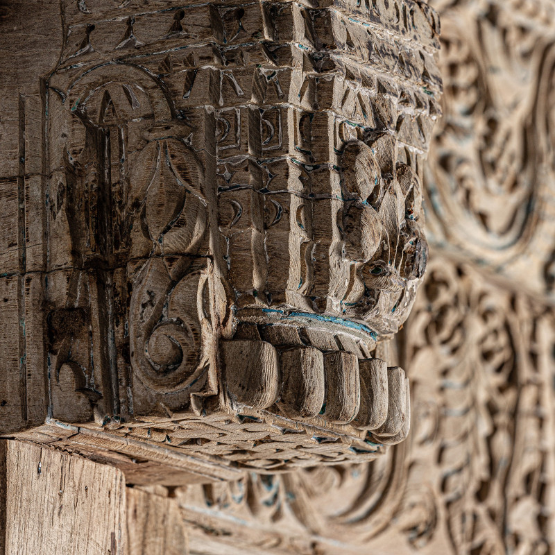 Espejo argeen en color natural envejecido de estilo etnico. Fabricado en madera de teka combinado con espejo.