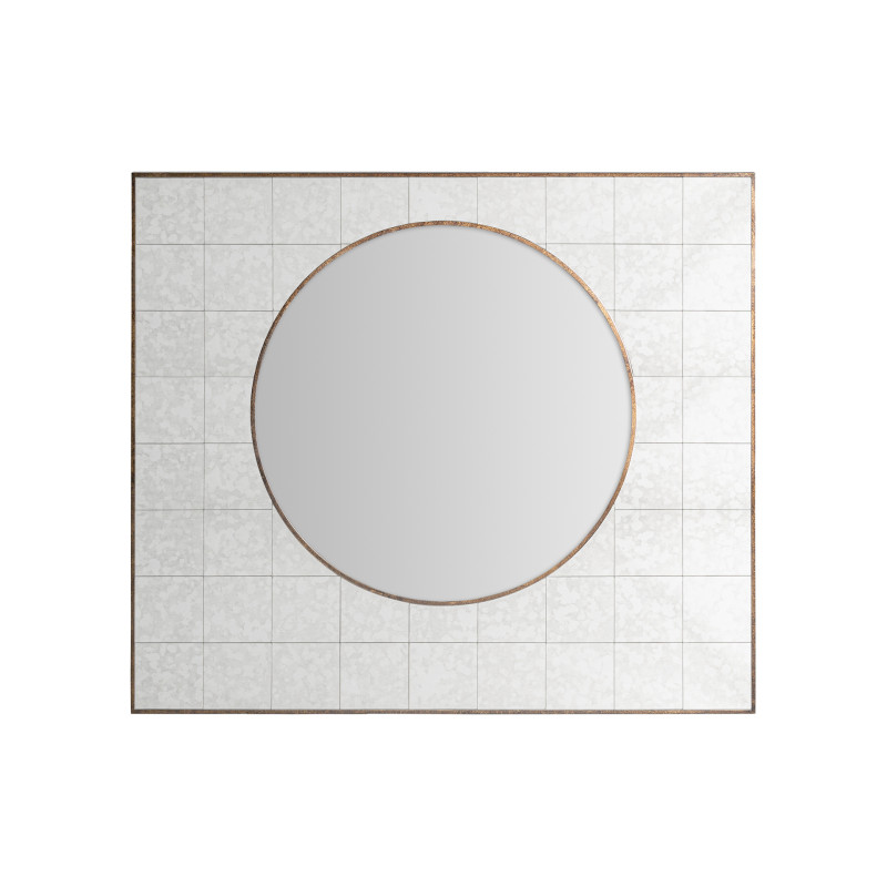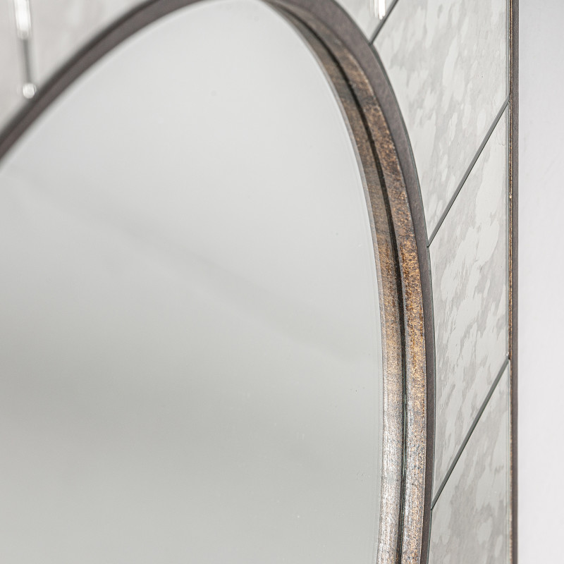 Espejo gadi de estilo art deco. Fabricado en madera dm en color blanco roto combinado con espejo.